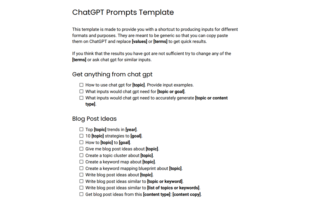 If you’re struggling to come up with ideas for your content or social media posts, our ChatGPT Custom Prompts Template can help.